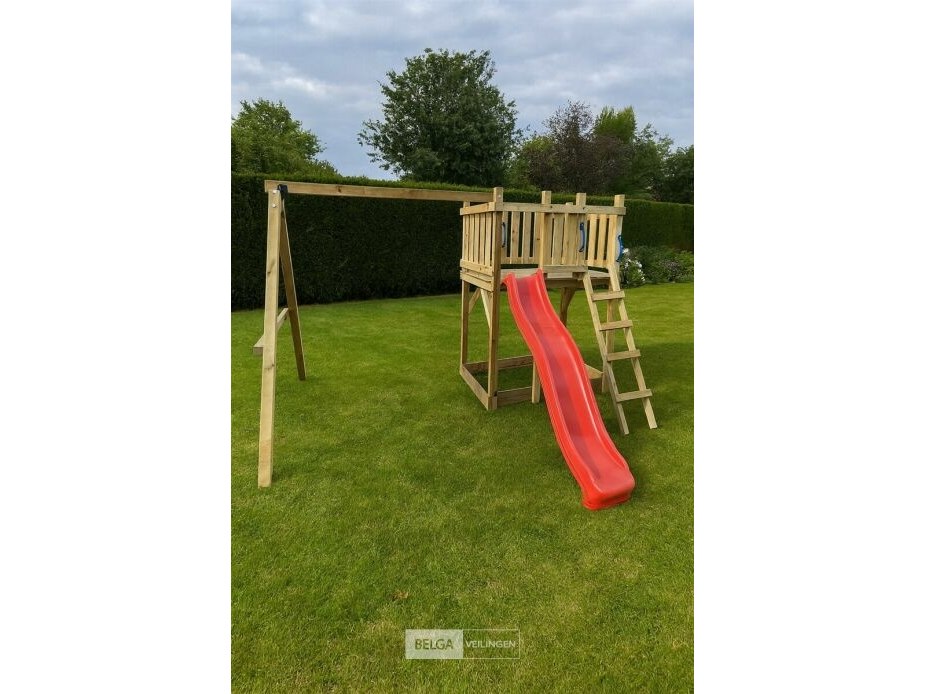 Speeltoren met schuifaf en schommels