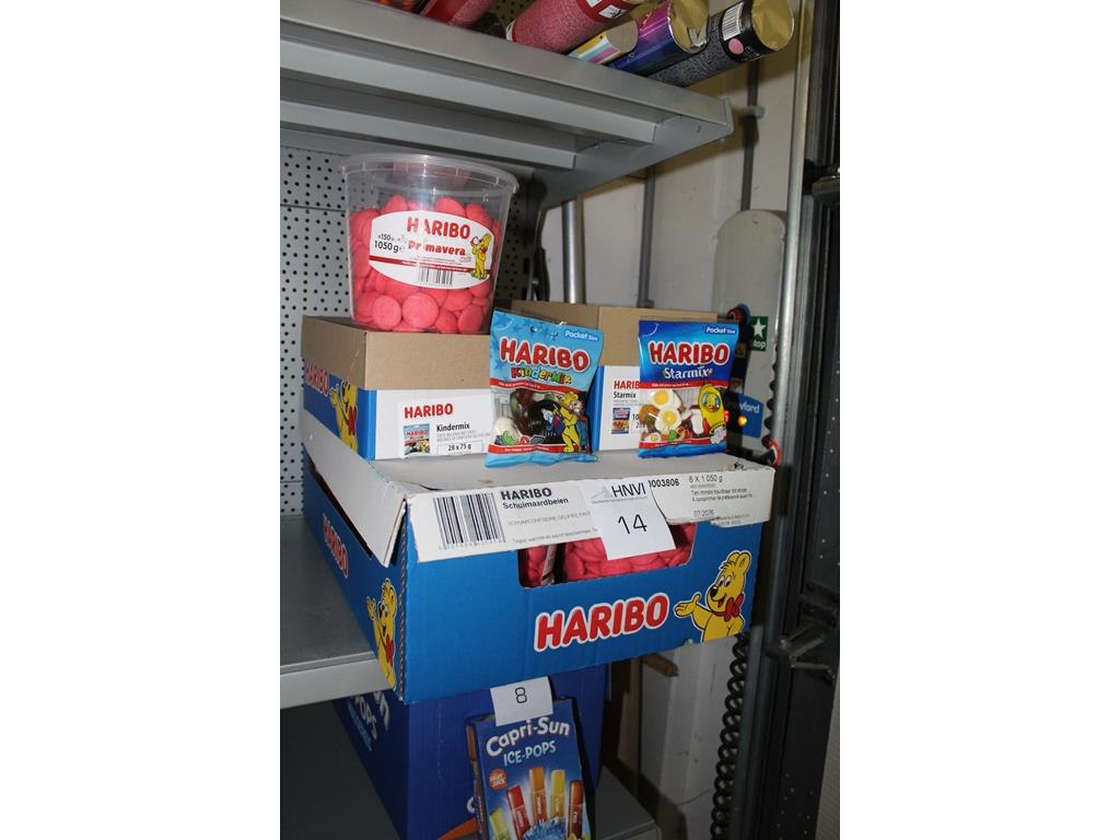 Drie dozen HARIBO w.o. kindermix, starmix en schuimaardbeien. THT 06-08-2026.
