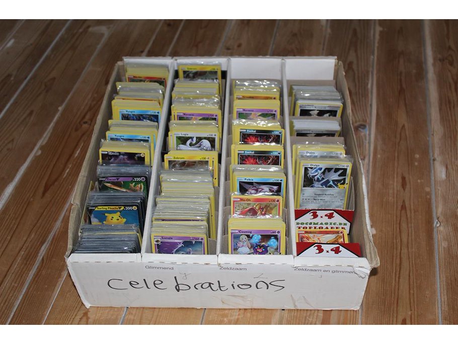 Diverse pokemon kaarten in doos w.o. collectie 25th anniversary celebration. onderdeel van combinatiekavel kavels p001 t/m p051 combinatiekavel