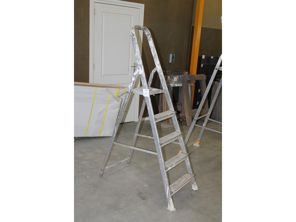 Huishoudtrap met vier treden en bordes.