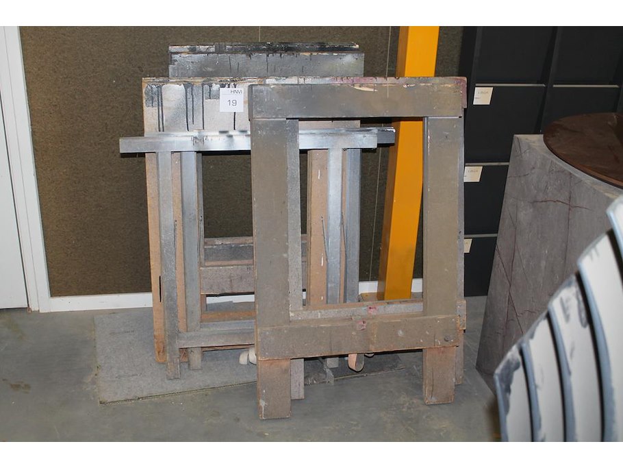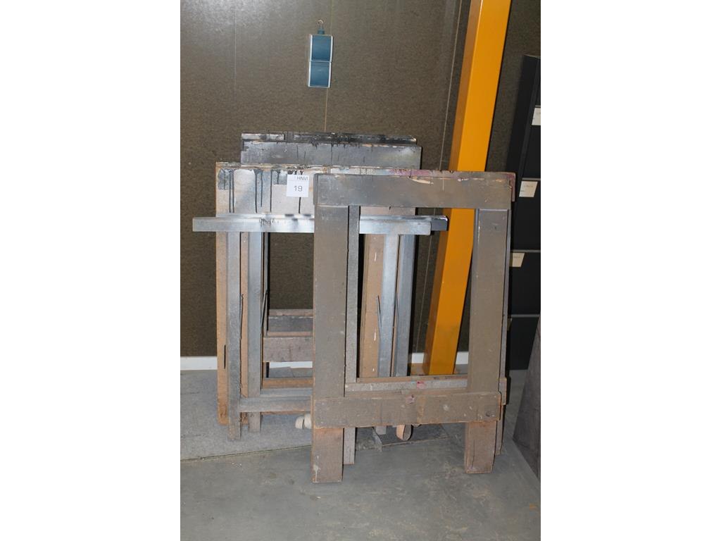Acht bokken/schragen in diverse uitvoeringen.