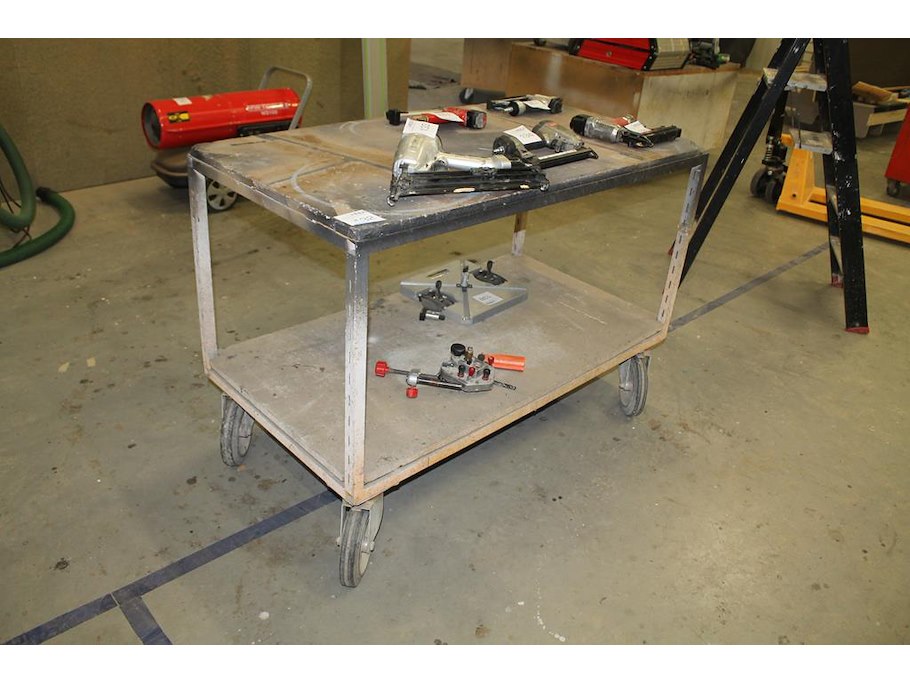 Magazijnkar met onderplateau. Afmeting 126 x 66 x 87 cm. Let op! Exclusief genummerde producten in en op kar.
