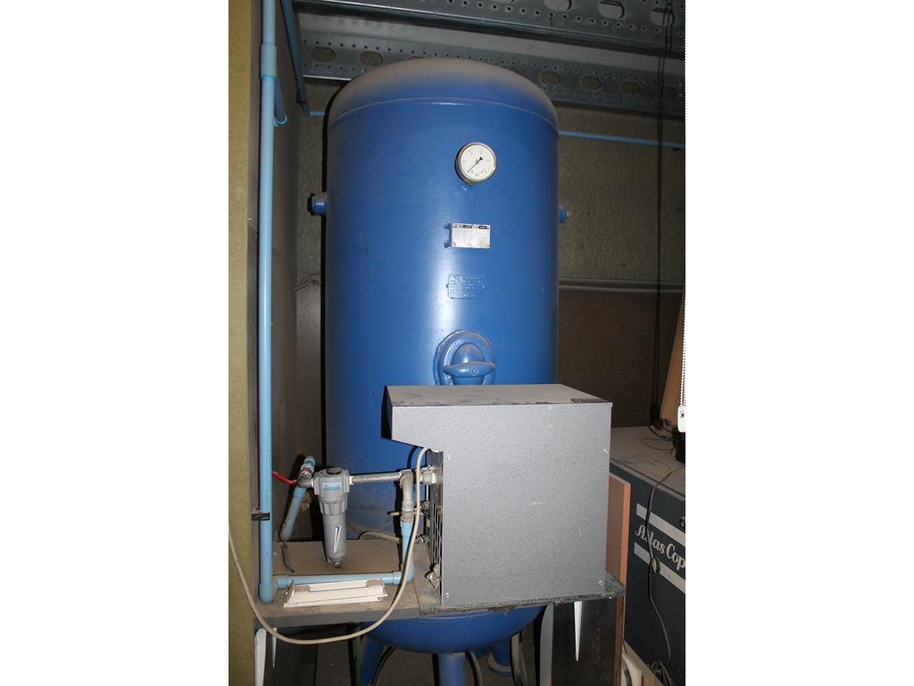 Compressor ATLAS COPCO GA111-122 met buffervat 900 ltr en luchtdroger EMINENT. 7468 draaiuren. Bouwjaar vermoedelijk 2009