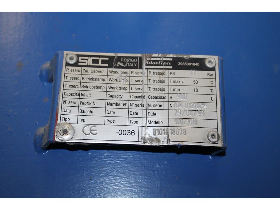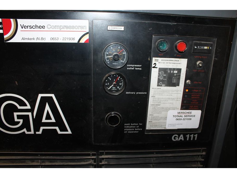 Compressor atlas copco ga111-122 met buffervat 900 ltr en luchtdroger eminent. 7468 draaiuren. bouwjaar ve...