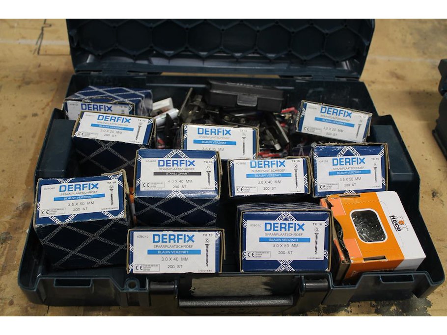 Bevestigingsmaterialen waaronder schroeven en pluggen in Lbox.