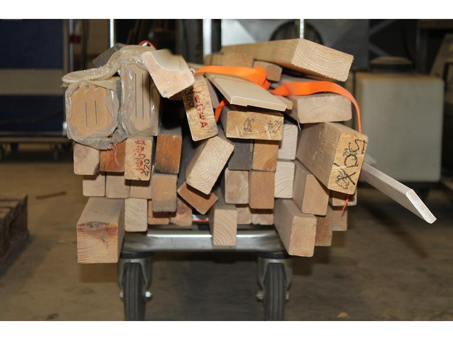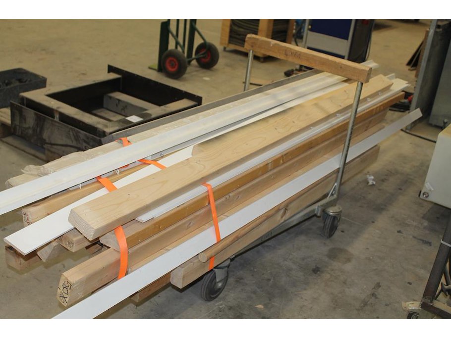 Plateauwagen met balken en plinten in diverse maten en uitvoeringen.
