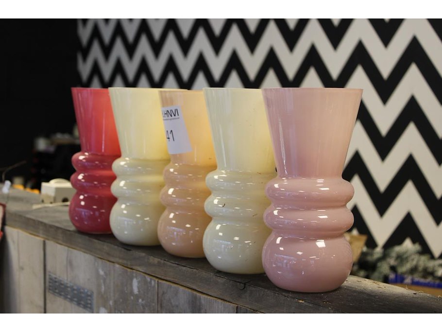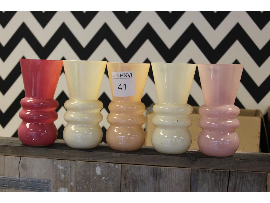 Vijf bloemenvazen hoogte 25 cm.