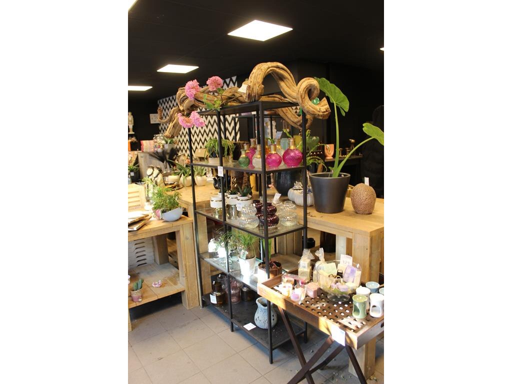 Drie metalen stellingkasten met glazen legbladen. Afmeting 100 x 36 x 180 cm.