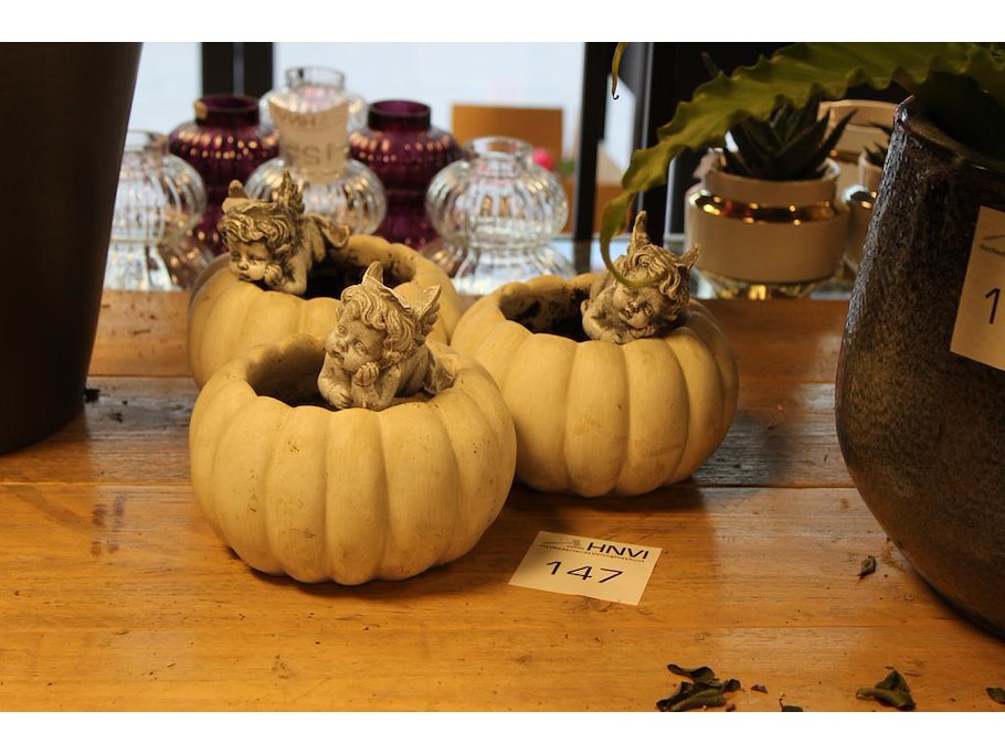 Drie pompoenpotjes met engel.