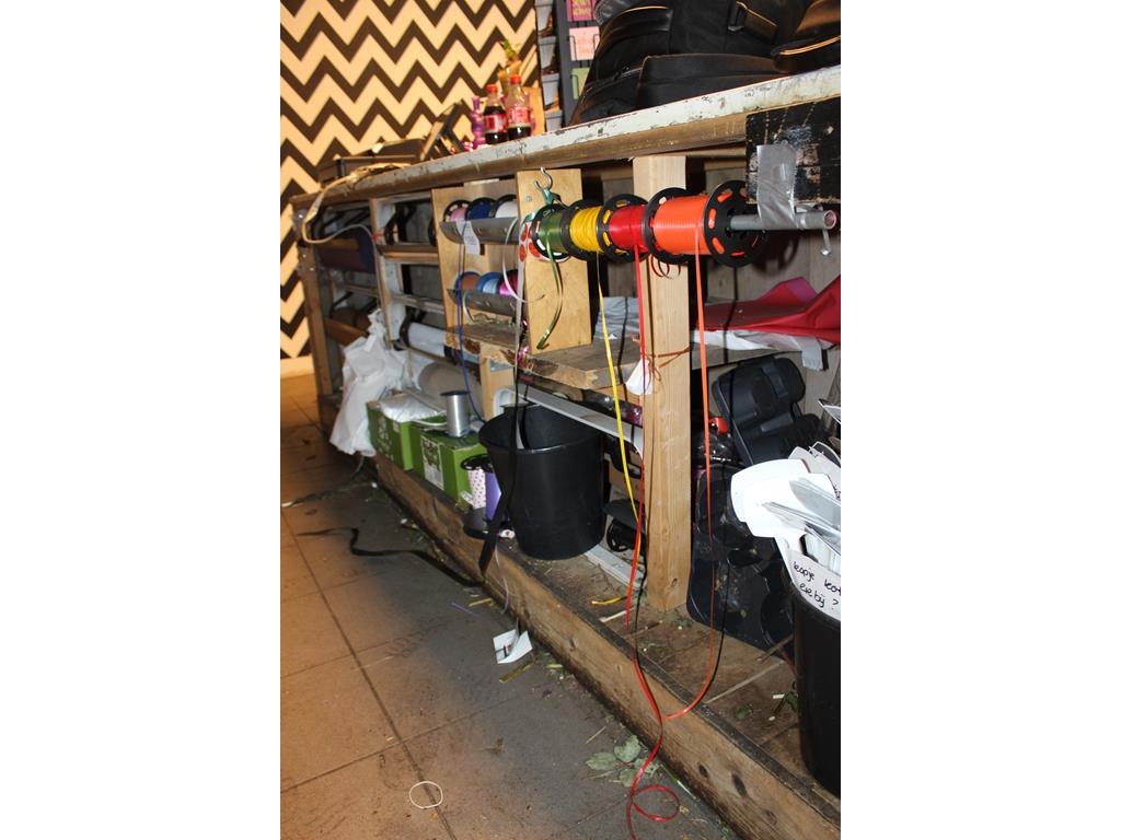 Inpakmaterialen en linten in baliemeubel. Excl. kadopapierhouders.