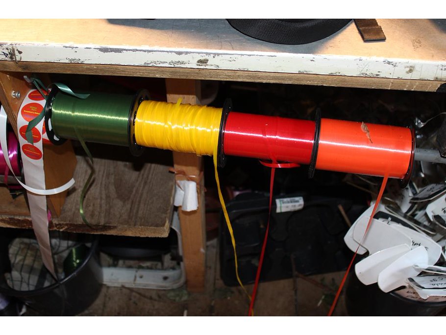 Inpakmaterialen en linten in baliemeubel. excl. kadopapierhouders.