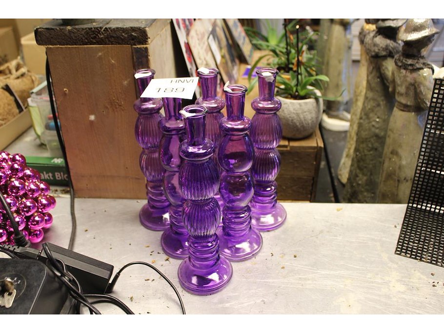 Zes glazen kandelaars hoogte 28 cm.