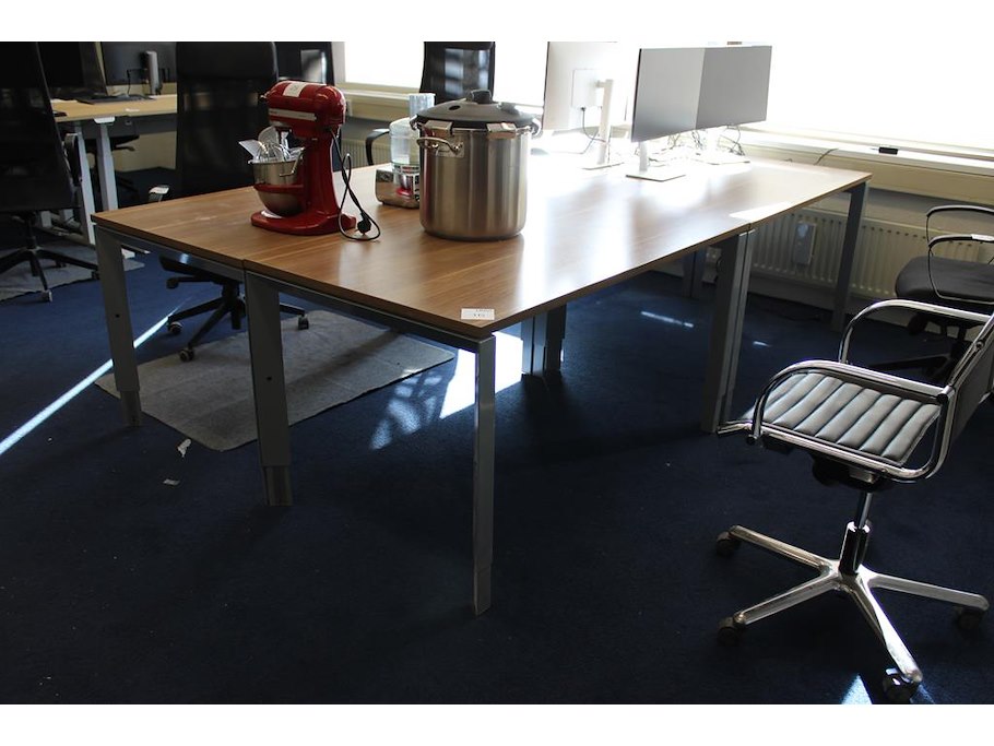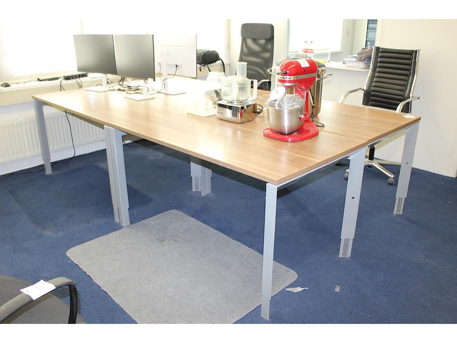 Vier in hoogte verstelbare werktafels. Afmeting 140 x 80 cm.