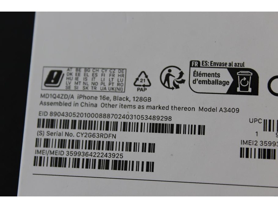 Mobiele telefoon apple iphone 16e. 128gb.