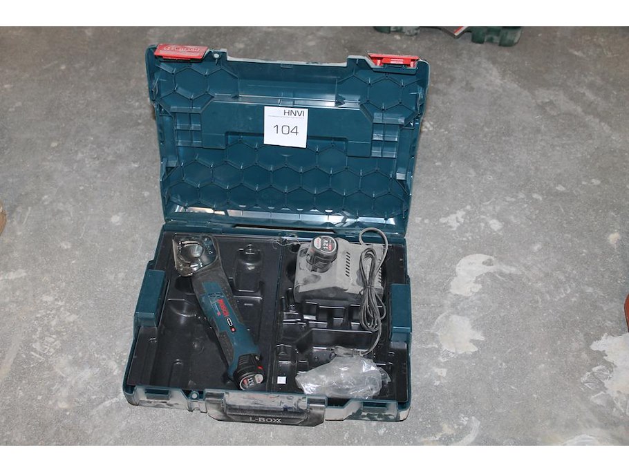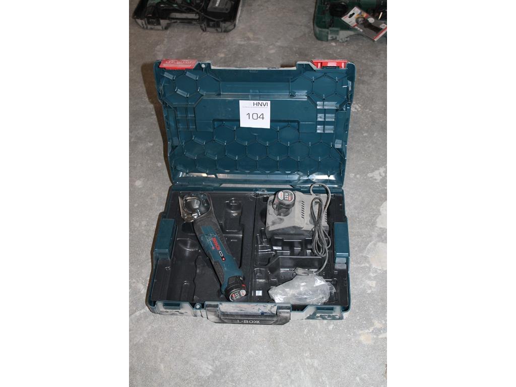 Accu textielschaar bosch gus12v-300 met extra accu en lader in kunststof koffer.