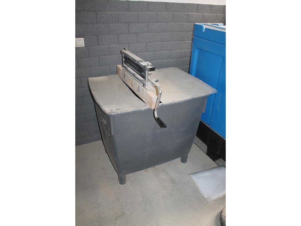 Mangel op kunststof bak. werkbreedte mangel 45 cm.