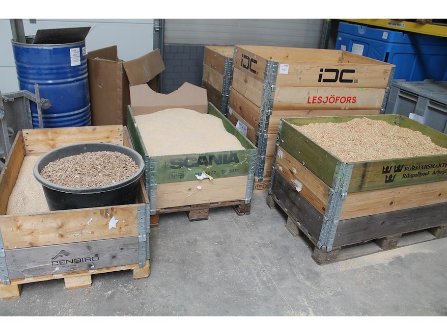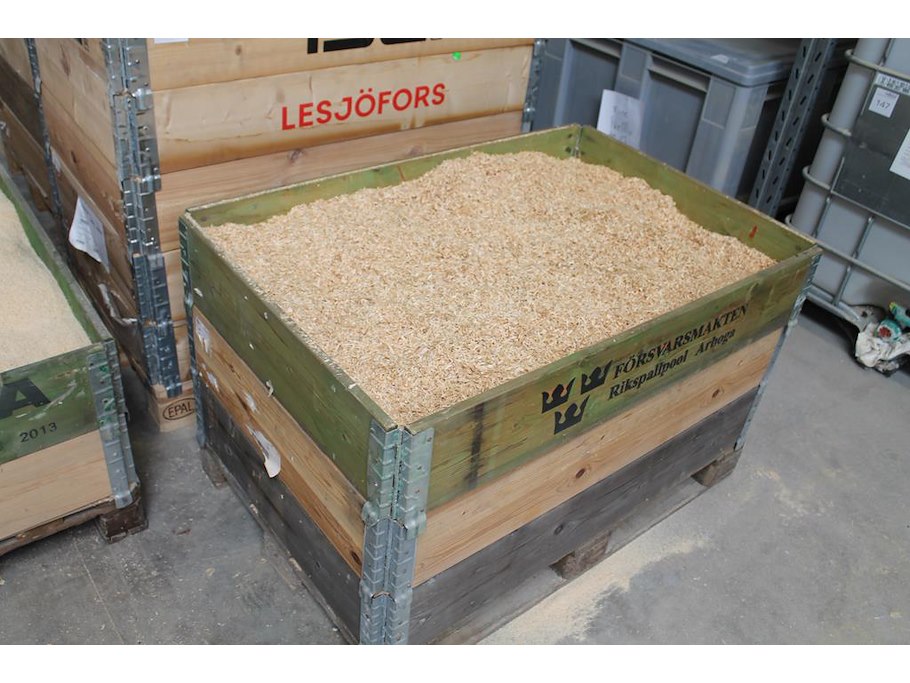 Zaagsel in diverse grofheden in 5 palletboxen.