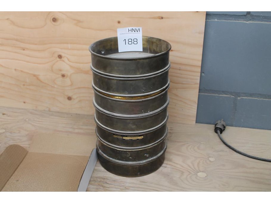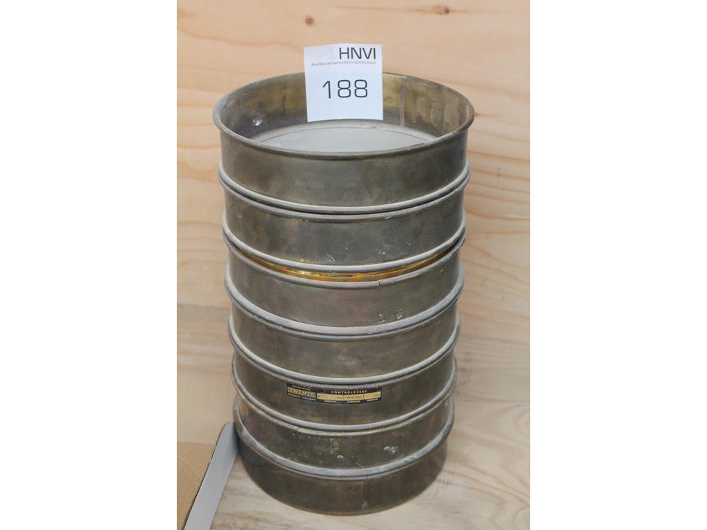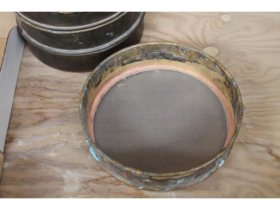 Zeven koperen controle zeven met doorsnede 21 cm.