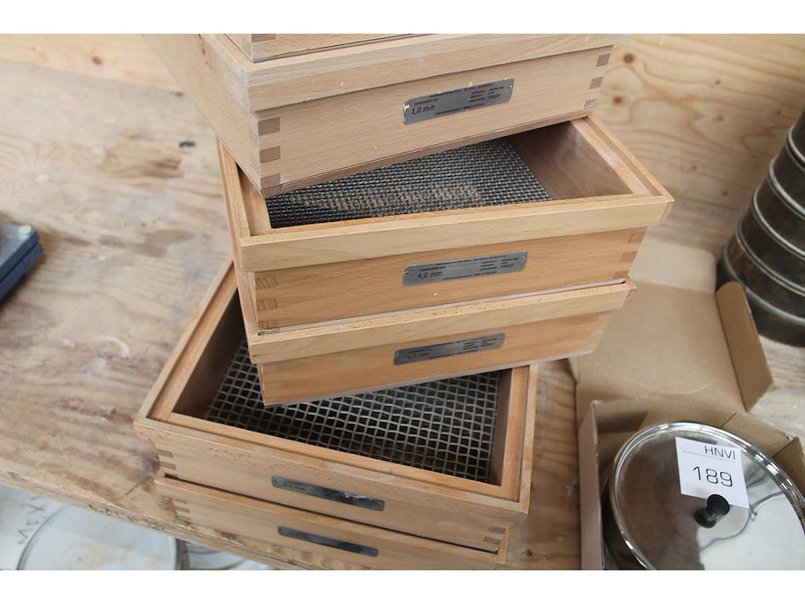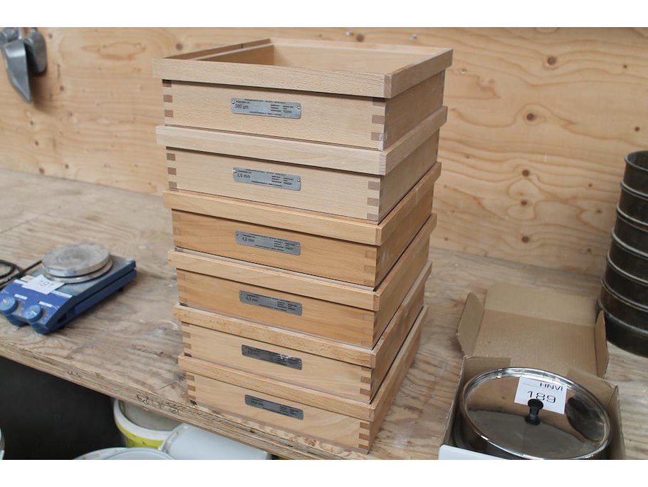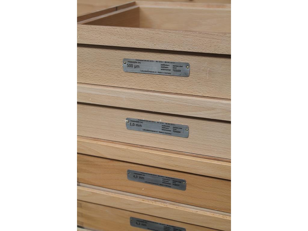 Zes controle-zeven met diverse maaswijdtes w.o. 500 um.