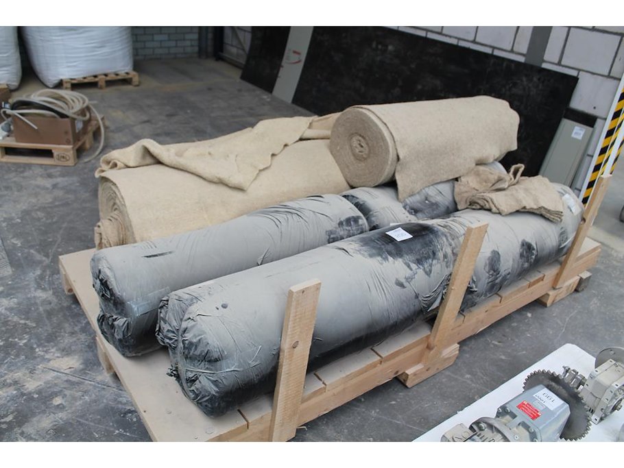 Zeven rollen vlasdoek op pallet. breedte rol 100 cm.