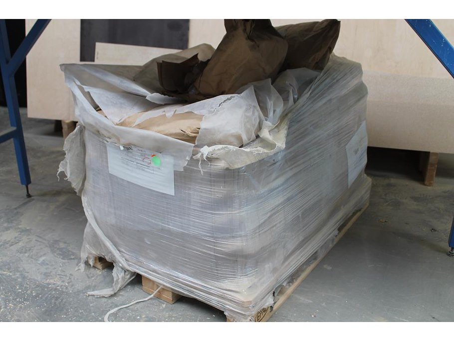 Twee kunststof palletboxen schoeller allibert met deksel. boxen zijn deels met mgo in 2 deeltjesgrootte.