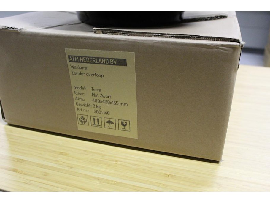 Waskom terra mat zwart. afmeting 400 x 400 x 155 mm. gewicht 8 kg.