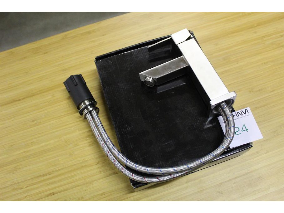 Rvs wastafelkraan calipso 210 vierkant. hoogte kraan 21 cm.