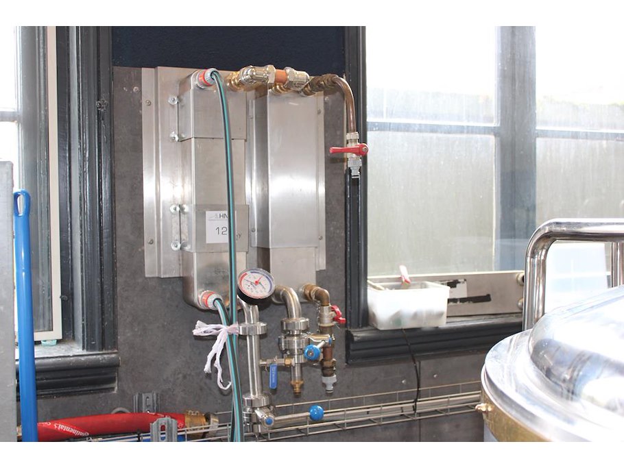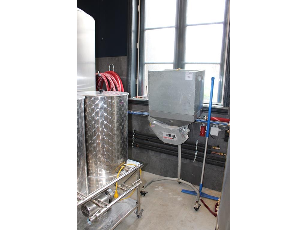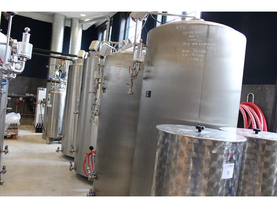 Complete mini brouwerijopstelling bestaande uit brouwhuis, 8 gistingstanks (deels gevuld), bottellijn, pompen, warmtewisselaar, natte lijn etiketteermachine en chiller. Let op: dit is een combinatiekavel van de kavels K002 t/m K014. Ophalen in overleg.