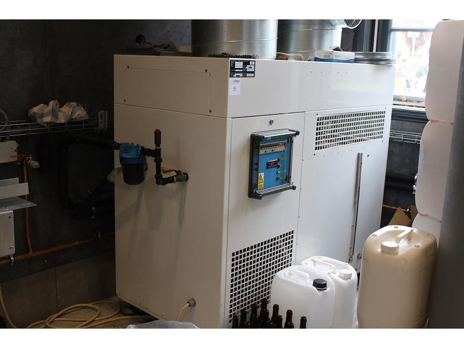 Complete mini brouwerijopstelling bestaande uit brouwhuis, 8 gistingstanks (deels gevuld), bottellijn, pompen, warmtewisselaar, natte lijn etiketteermachine en chiller. Let op: dit is een combinatiekavel van de kavels K002 t/m K014. Ophalen in overleg.