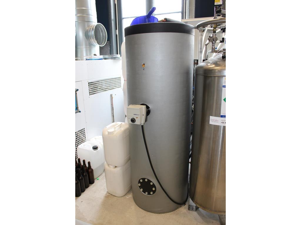 Ventilatielucht-/warmtepomp nibe fighter 120 met 3 instelbare buffervaten. onderdeel van combinatiekavel complete mini brouwerijopstelling bestaande uit brouwhuis, 8 gistingstanks (deels gevuld), bottellijn, pompen, warmtewisselaar, natte lijn etiketteermachine en chiller