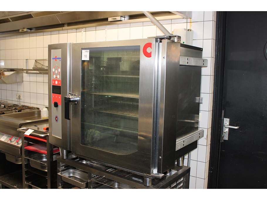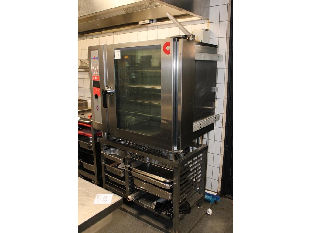 Steamer convotherm osp met rvs onderstel met diverse gastronorm bakken.
