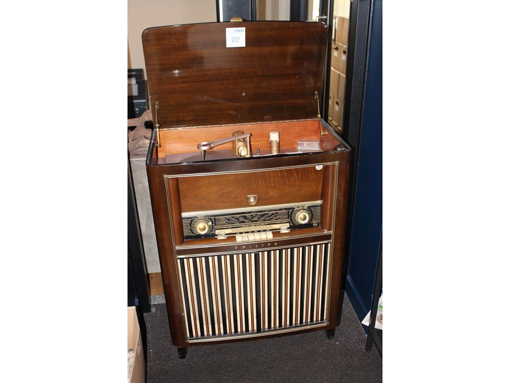 Antieke radio- / platenspelerkast philips jupiter 652. platenspeler defect werking radio onbekend. afmeting...