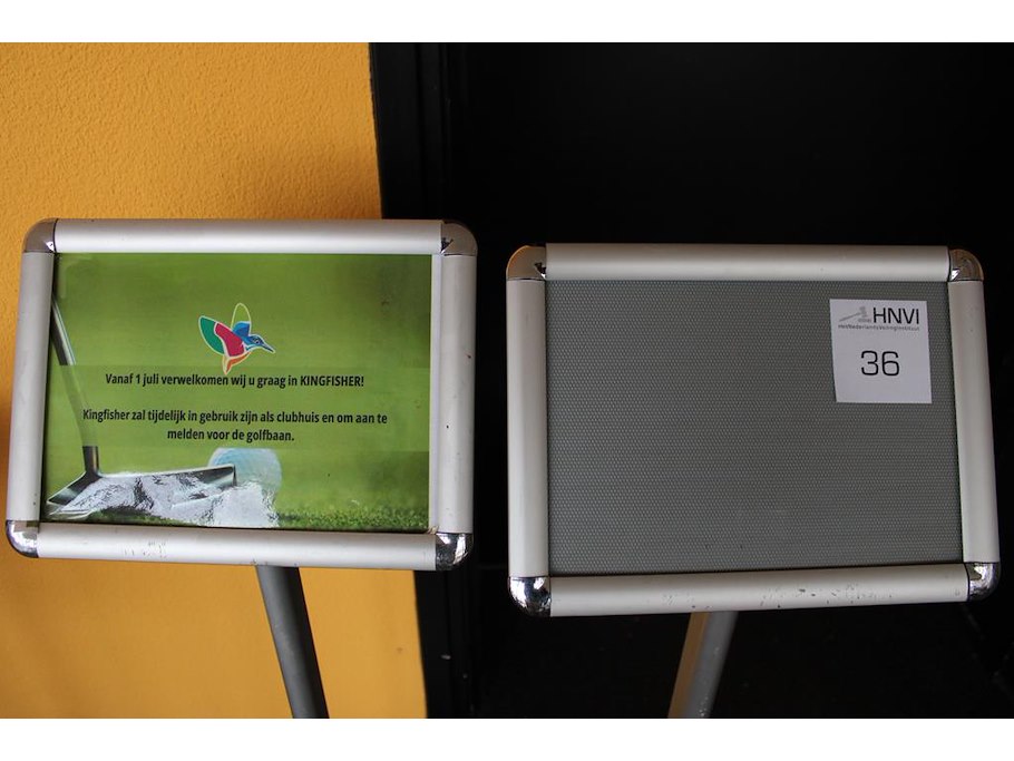 Twee wegwijsborden met afmeting 33 x 24 x 100 cm.