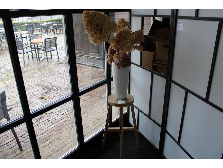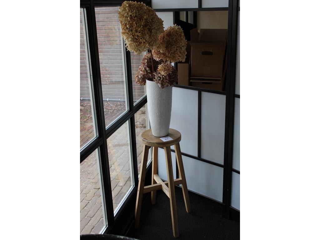 Droogbloemen in vaas op houten statief. totale hoogte 160 cm.