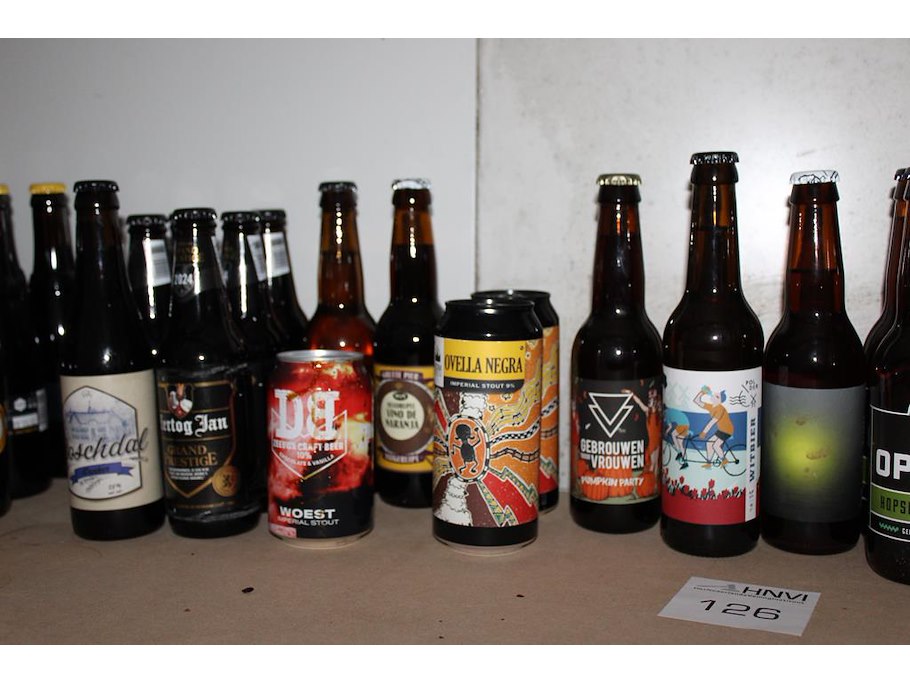 Diverse speciaalbieren op schap. 17 stuks.