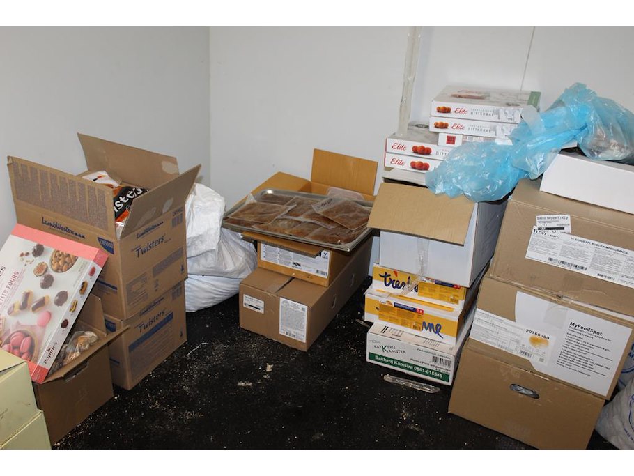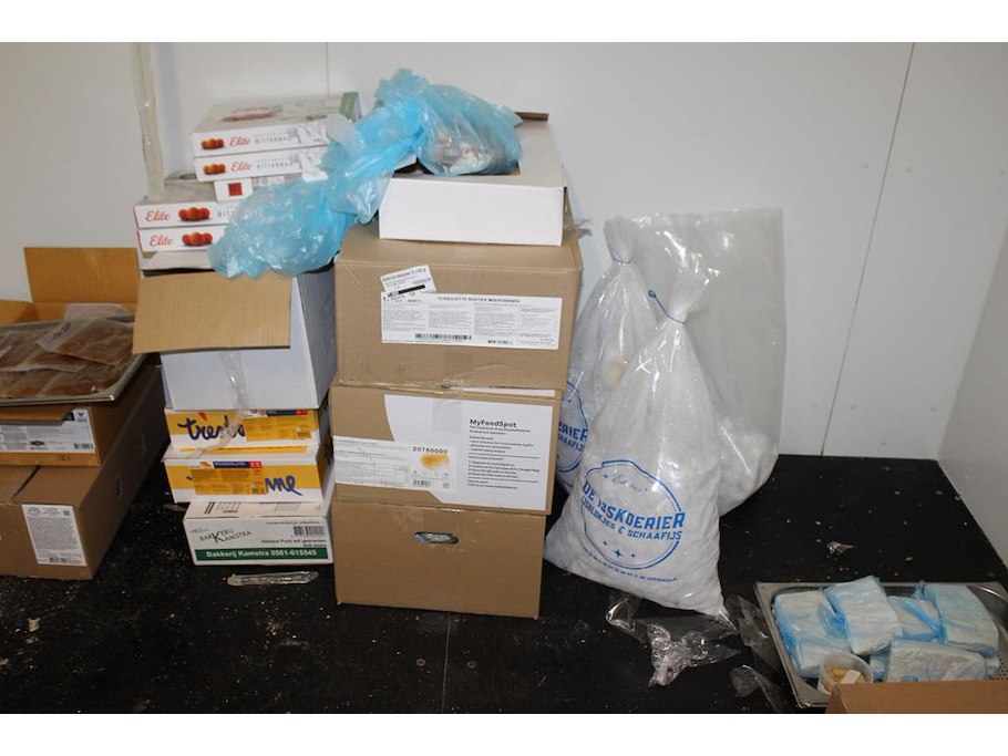 Inhoud van vrieskast w.o. broodproducten, gebak, taart, bitterballen, ijs , aardappelkrullen. Voornamelijk aangebroken verpakkingen.