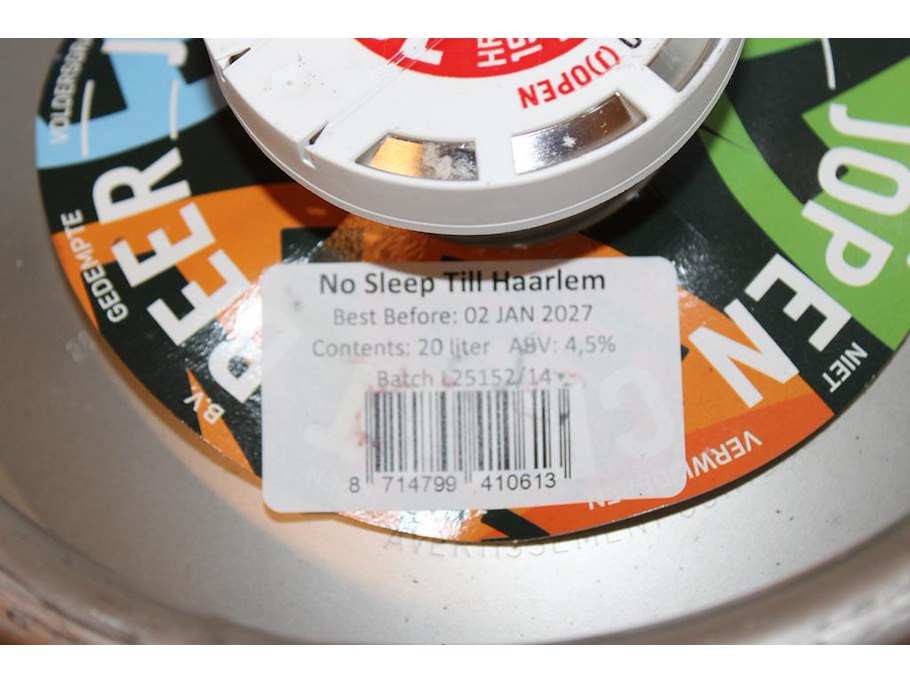 Bierfust 20 liter jopen no sleep till harlem. tht 1-27.