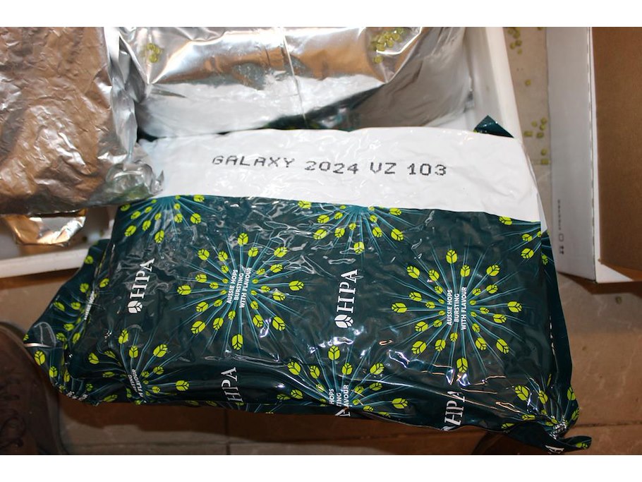 Bierproductie grondstoffen in koeling w.o. cascade, saaz, Galaxy, Talus en eldorado.