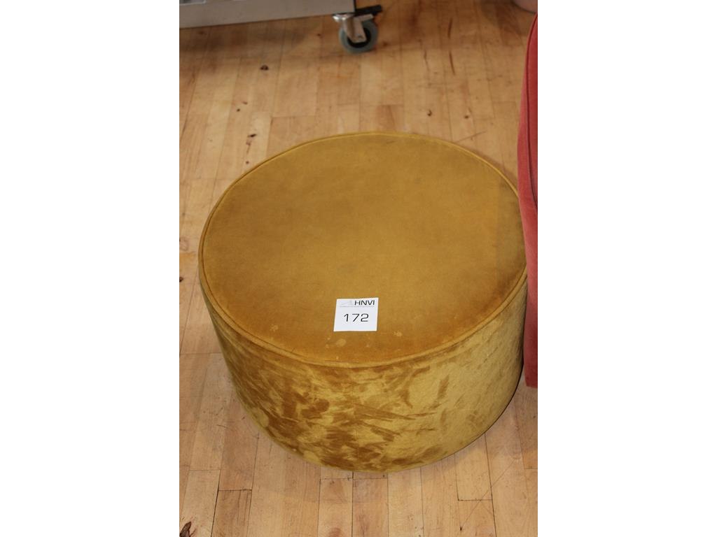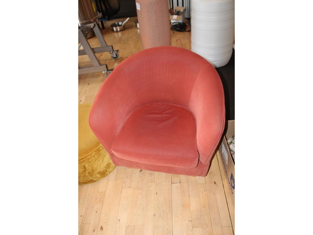 Wachtkamerset bestaande uit blauwe en rode fauteuil en gele poef / tafel met doorsnede 60 cm.