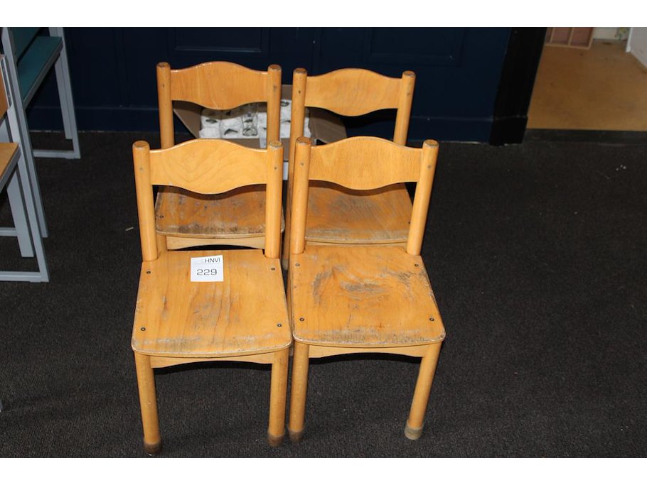 Vier houten kinderstoelen.
