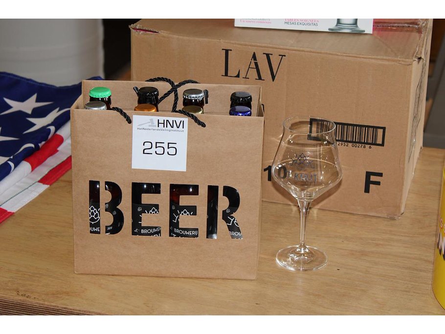 Acht bieren t krut met glas.