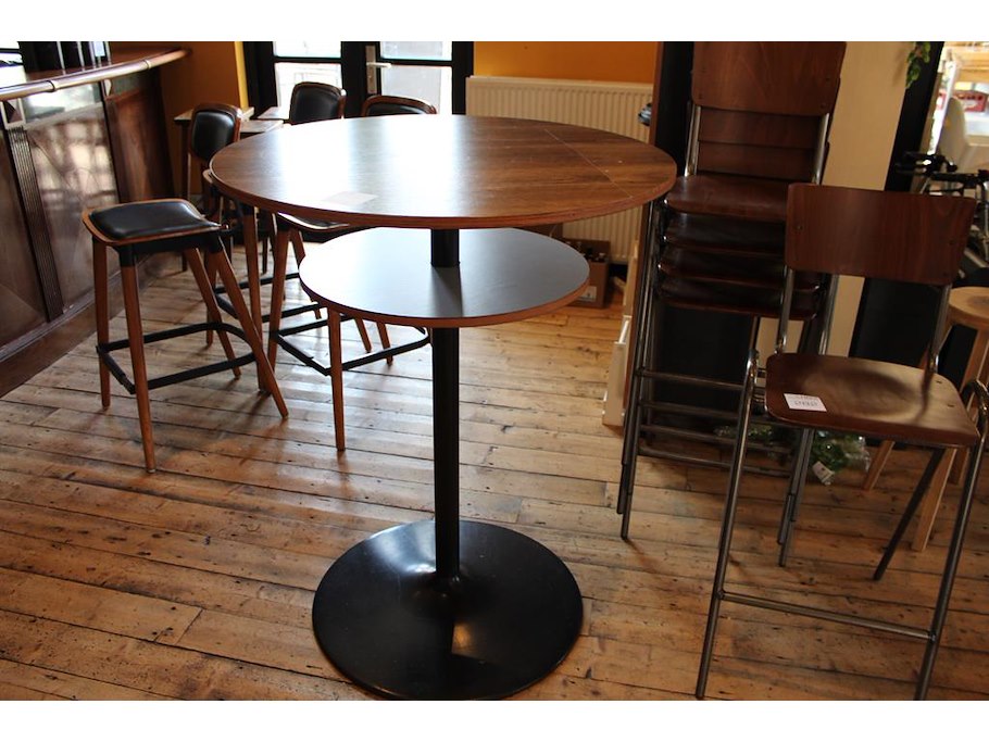 Statafel met onderschap. Doorsnede 90 cm hoogte 115 cm.