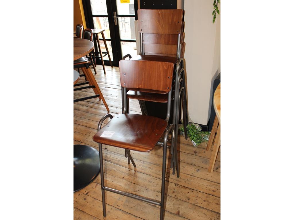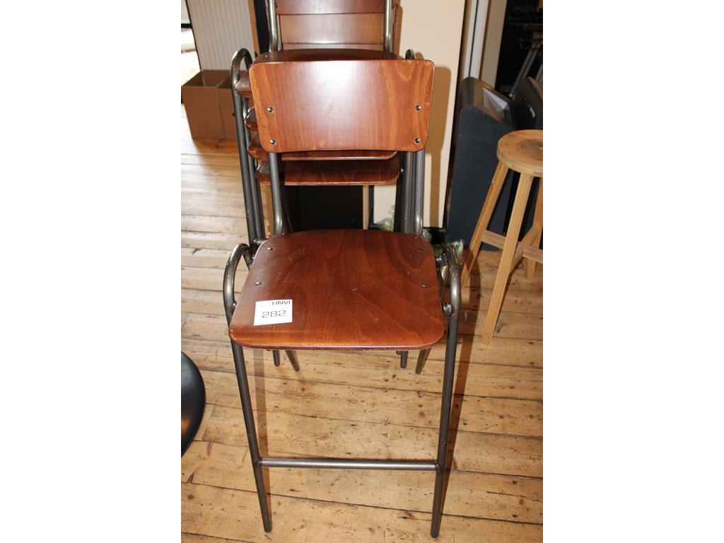 Vijf stapelbare barkrukken.