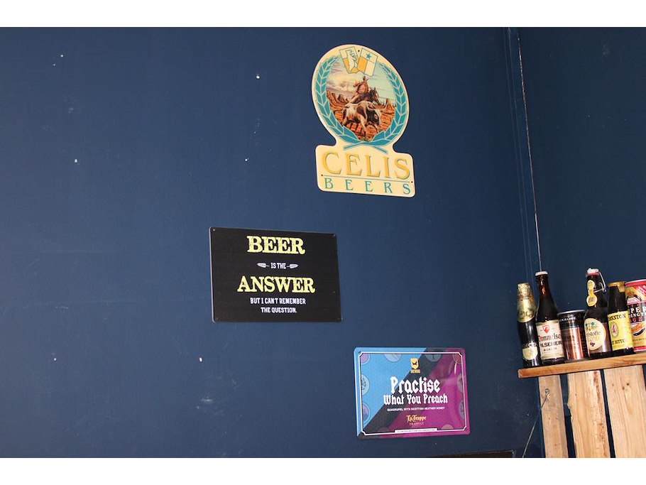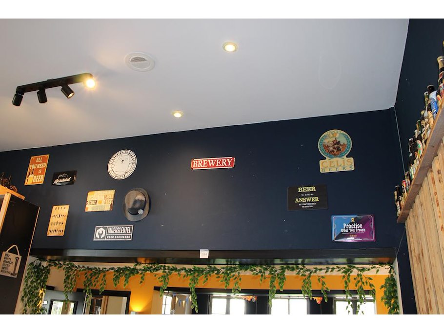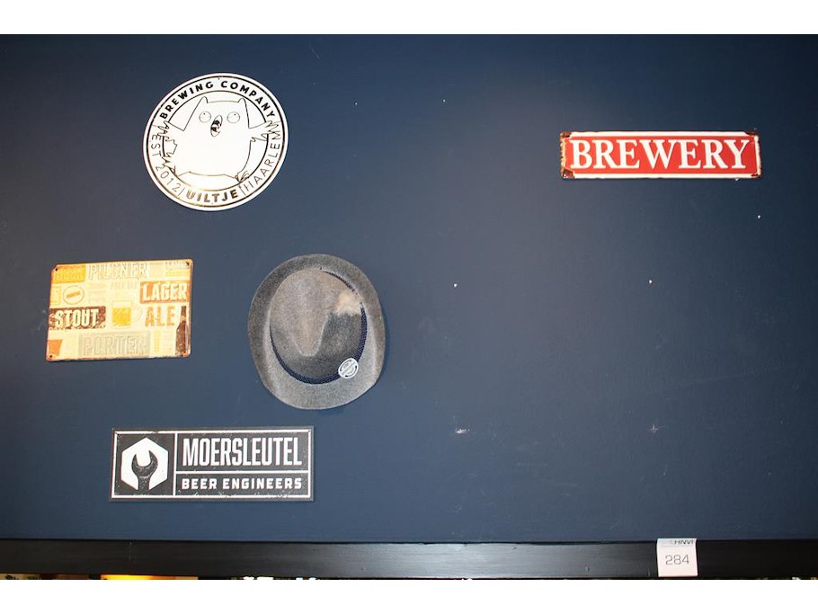 Diverse bier gerelateerde metalen borden 10 stuks en hoed.