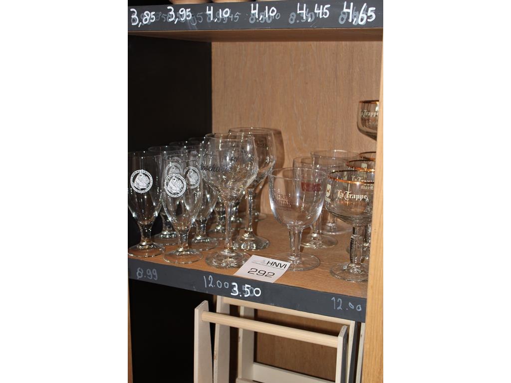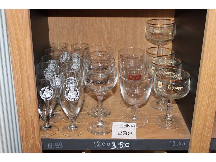 Diverse bierglazen op schap 19 stuks.