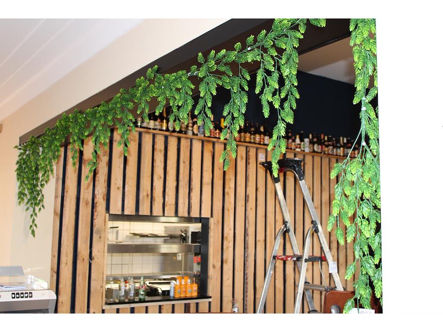 Kunsthop aan plafond.