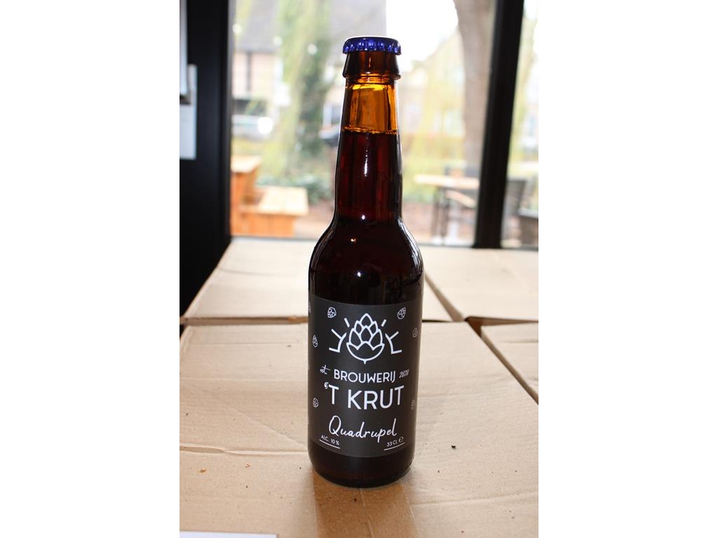Twee dozen QUADRUPEL 'T KRUT THT 07-2027. Totaal 48 flesjes.