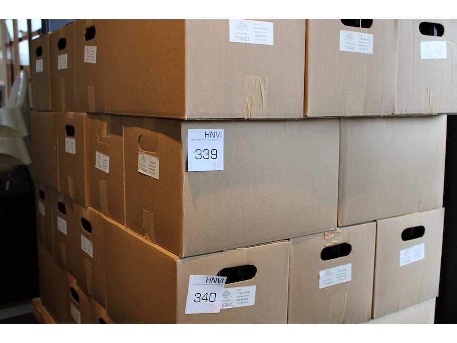 Negen dozen NEIPA 'T KRUT THT 08-2026. Totaal 216 flesjes.