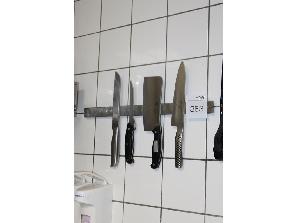 Magnetisch messenrek met drie messen en bijl.