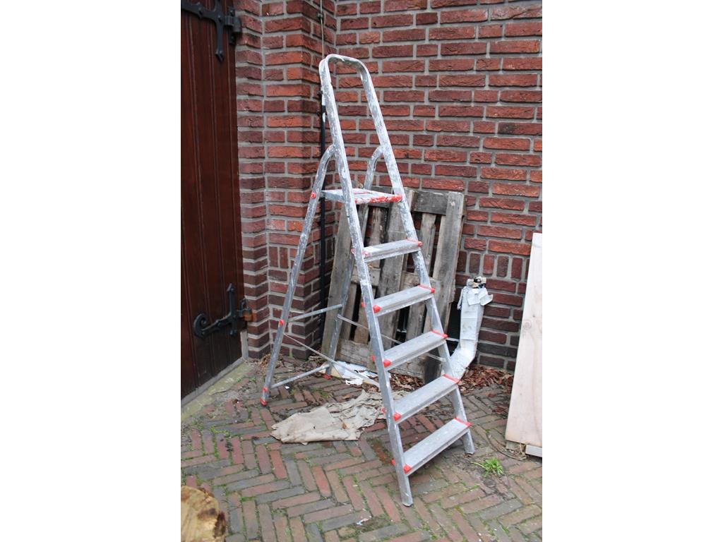 Huishoudtrap ANTREX met vijf treden en bordes.